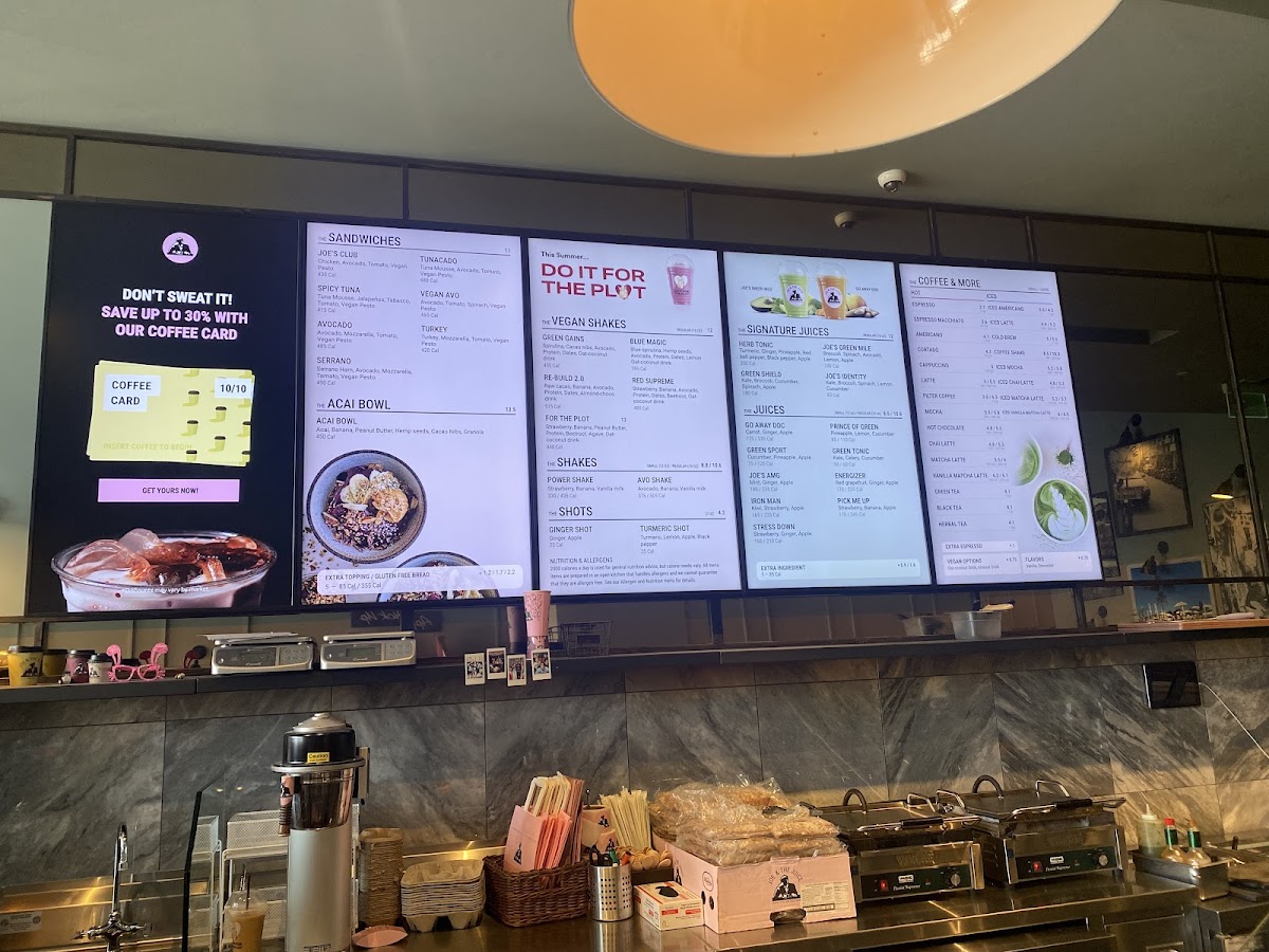 The juice selection is equally impressive, featuring nutrient-rich blends such as the Herb Tonic with turmeric and ginger, and the JOE’s Identity packed with kale, celery, and olive oil—perfect for health lovers seeking a refreshingly bold drink.